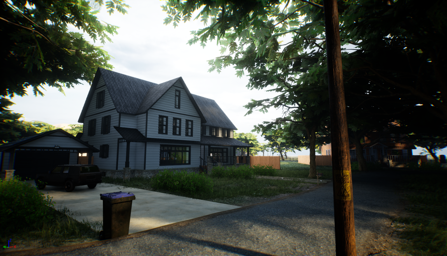 • Each building is unique, using data asset tables to swap out window styles, room layouts, and item placements.